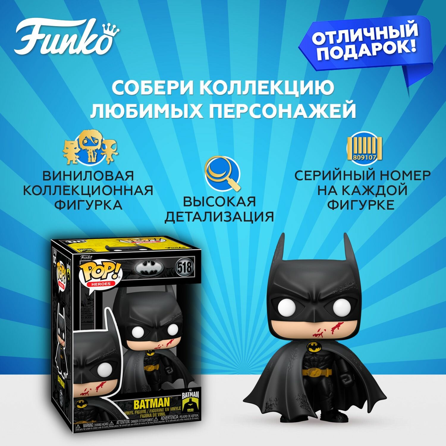 Фигурка Funko POP! Heroes Batman 85th Batman Bloody (518) 80686 по мотивам вселенной "DC". Характеристики: