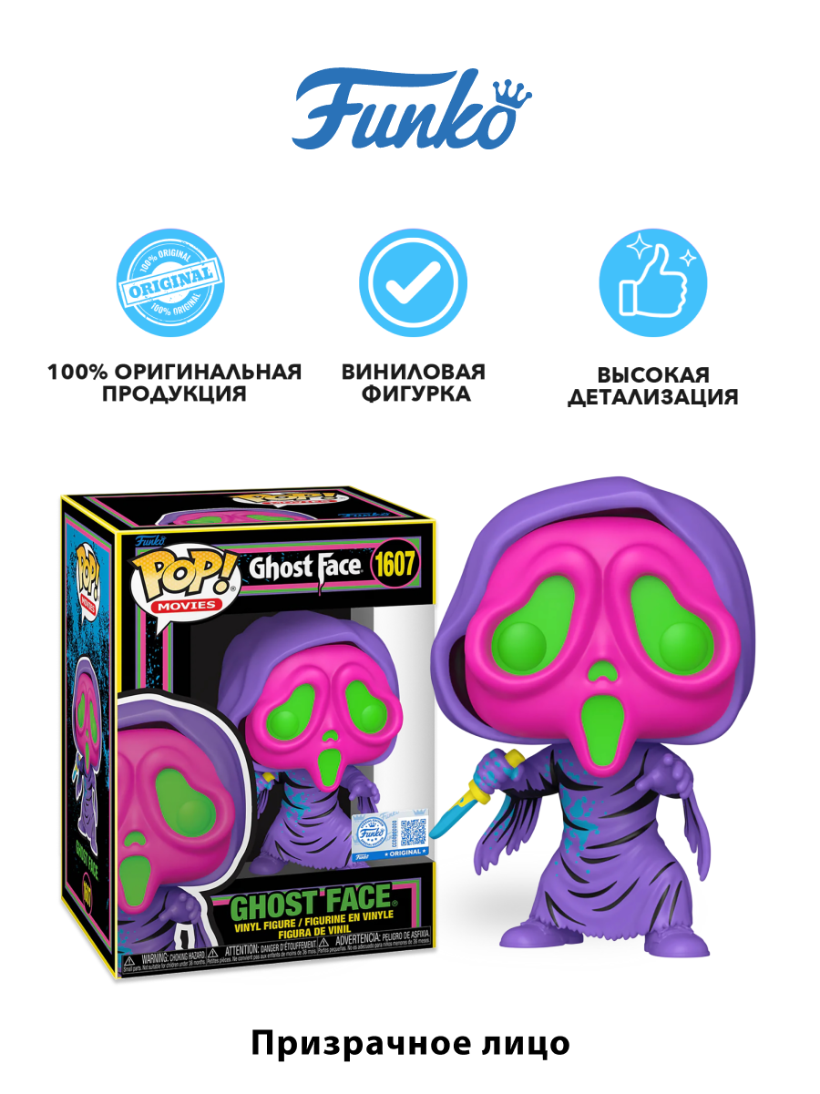 Фигурка Funko POP! Movies Ghost Face Ghost Face (BLKLT) (Exc) (1607) 84928 по мотивам франшизы "Крик". Характеристики: