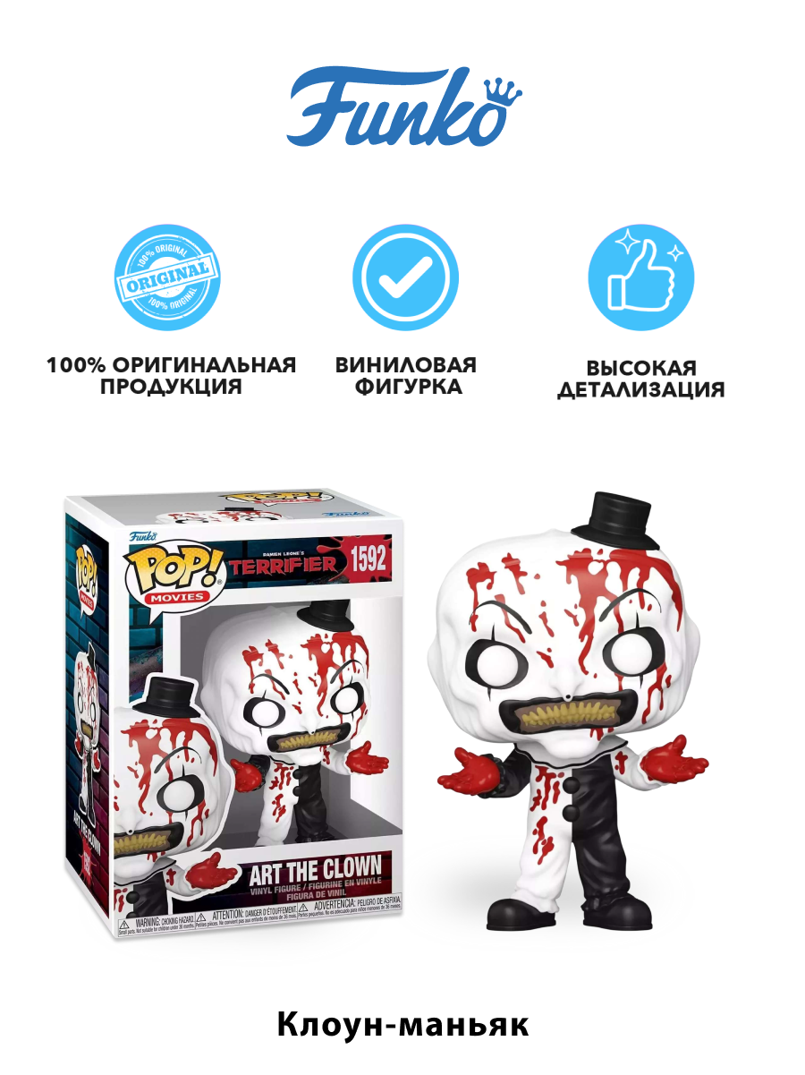 Фигурка Funko POP! Movies Terrifier Art the Clown (Bloody) (1592) 80707 - это коллекционная игрушка, созданная по мотивам культового фильма "Ужасающий". Она выполнена из винила и имеет размеры 11.5 х 9 х 16 см, что делает ее удобной для хранения и транспортировки.