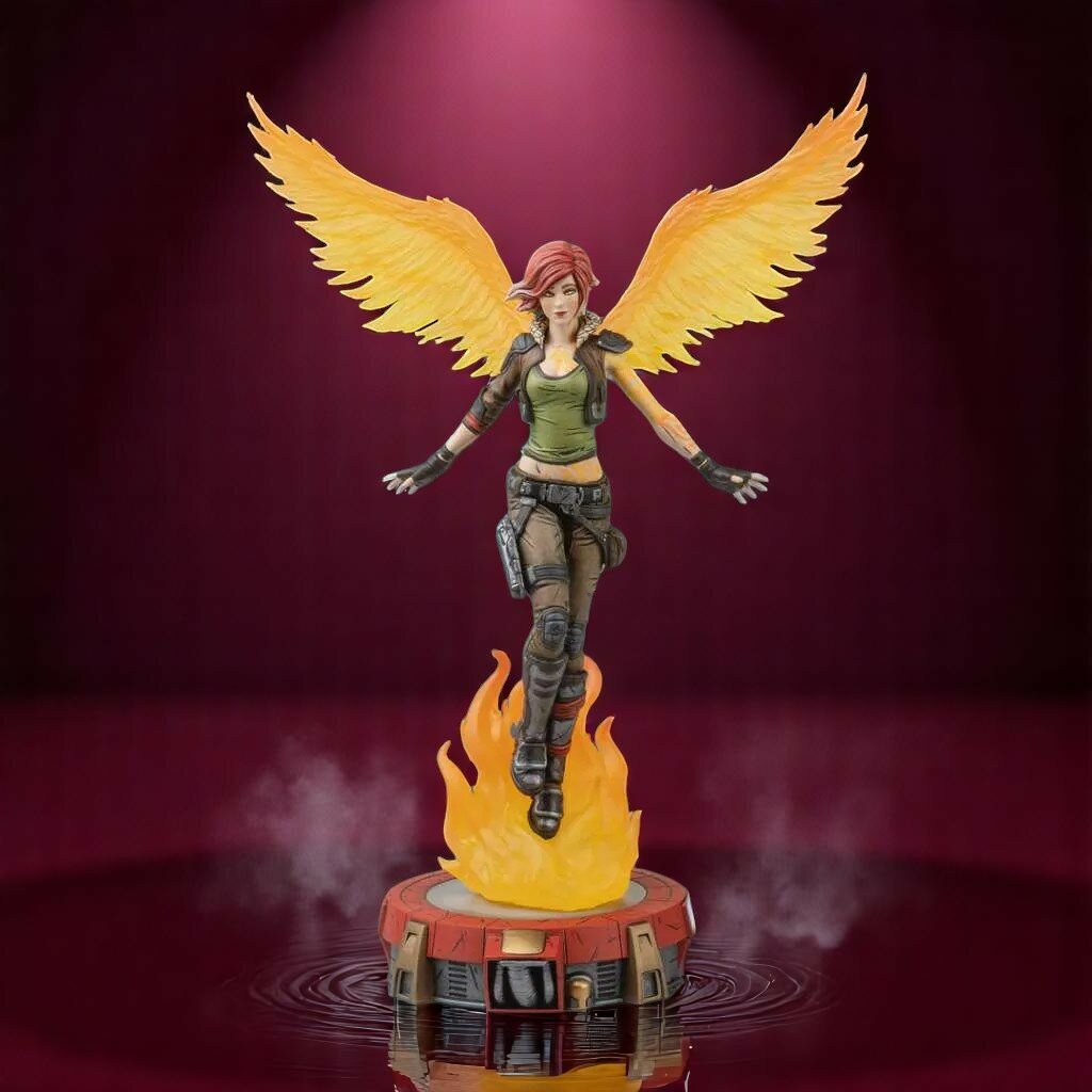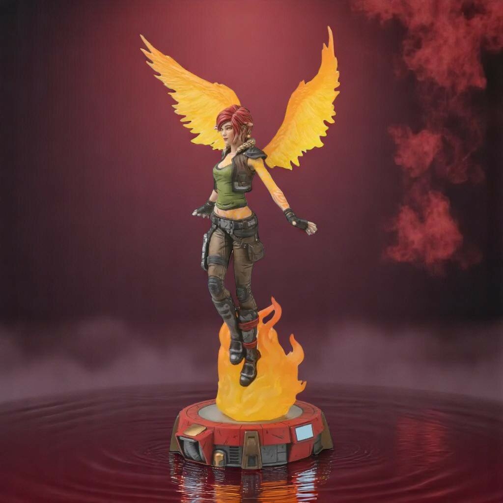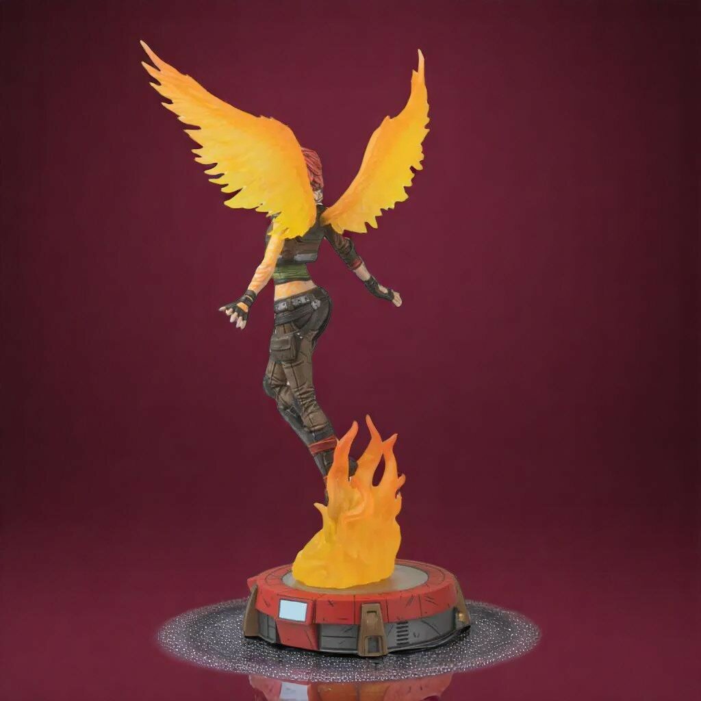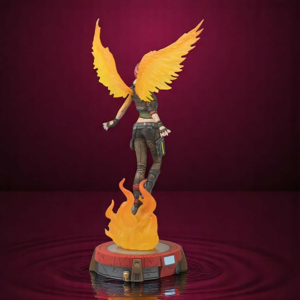 Высота фигурки Лилит из серии игр "Borderlands" составляет 28 см, ширина базы — 11 см, размах эпически пылающих крыльев — 19 см. Хотите более «приземленный» вид? В комплект входит дополнительная задняя часть, чтобы выставлять ее без крыльев.