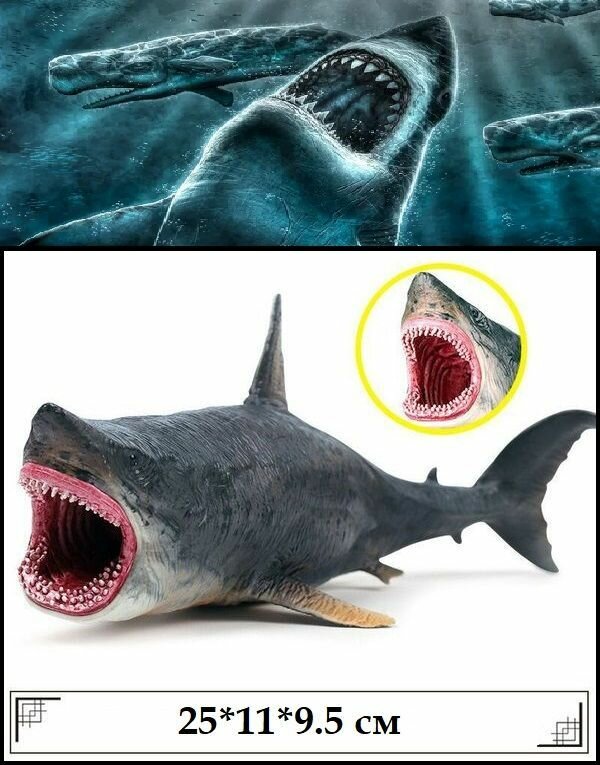 Большая реалистичная фигурка Мегалодона , размером 25*11*9.5 см , порадует всех любителей динозавров и палеонтологии.