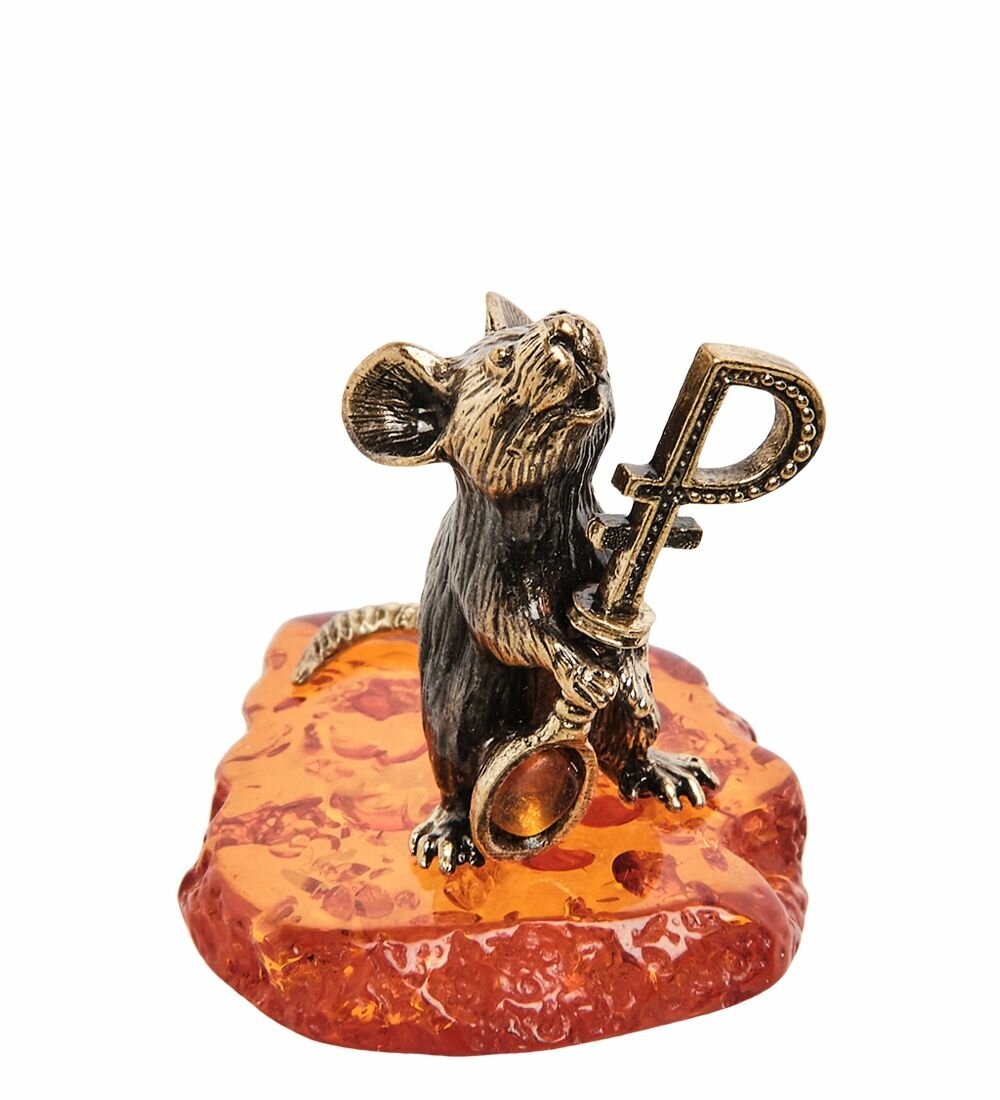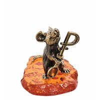 Фигурка 'Мышь с ложкой Рубль' (латунь, янтарь)