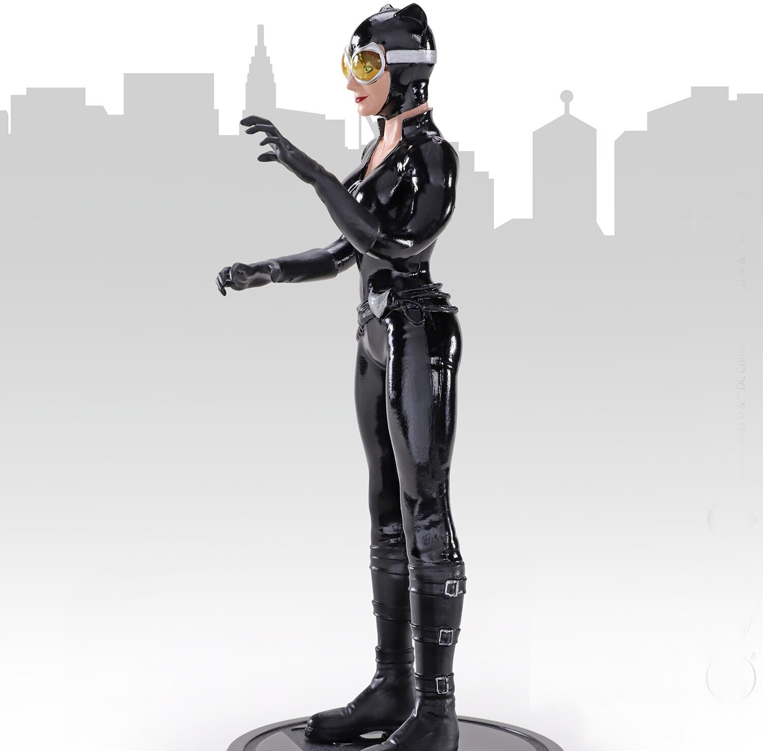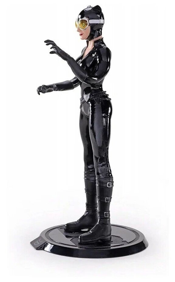 The Noble Collection основана в Вашингтоне в 1991 году и за свою долгую историю работы успела собрать талантливую команду художников, инженеров, скульпторов, которые, стремясь к совершенству, создают удивительную продукцию, зарекомендовавшую себя высоким качеством. Коллекционная фигурка Женщины-кошки - ловкой, скрытной и с выдающимися бойцовскими навыкамми. Начав свою карьеру в качестве домушницы, она сумела сойти с преступного пути и посвятить себя защите Готэм Сити. Эта фигурка входит в серию Bendyfig, все фигурки этой серии поставляются в комплекте с подставкой, имеют высоту около 19 см и отличаются гибким форм-фактором. Произведено по официальной лицензии.