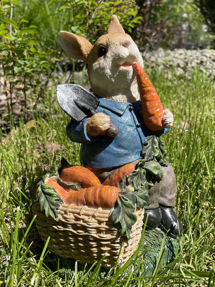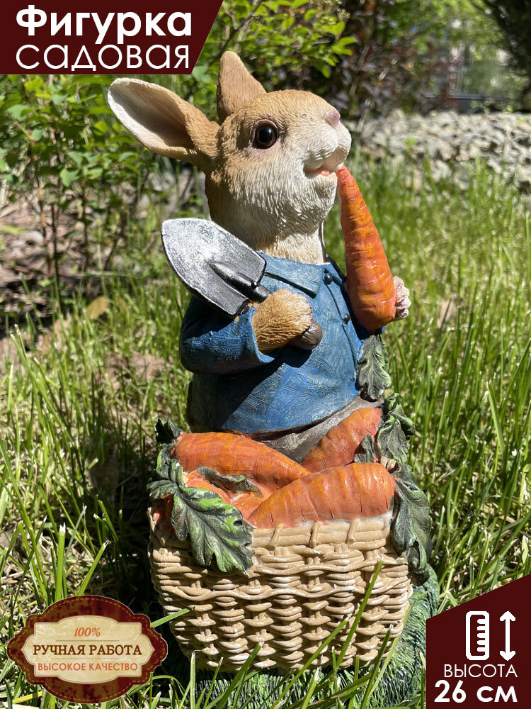 Фигурка изготовлена из высококачественного полистоуна — инновационного материала, объединяющего прочность, легкость и экологичность. Полистоун устойчив к влаге, перепадам температур и выцветанию, что гарантирует долговечность даже при размещении на улице (в беседках, террасах). Материал идеально передает мельчайшие детали: складки одежды, корзина с морковью.