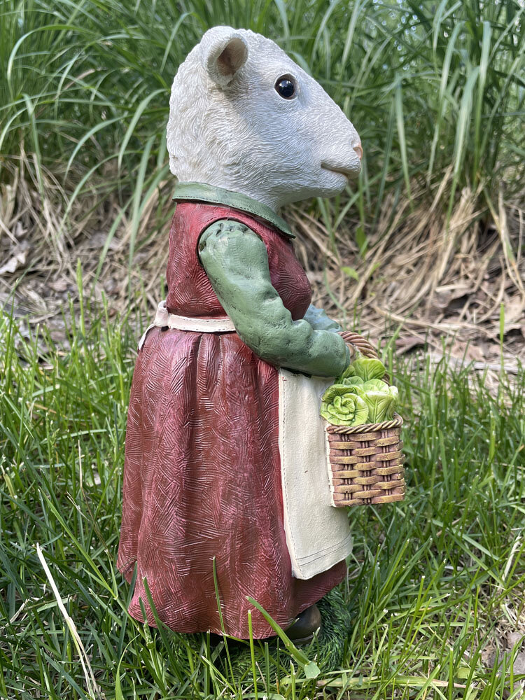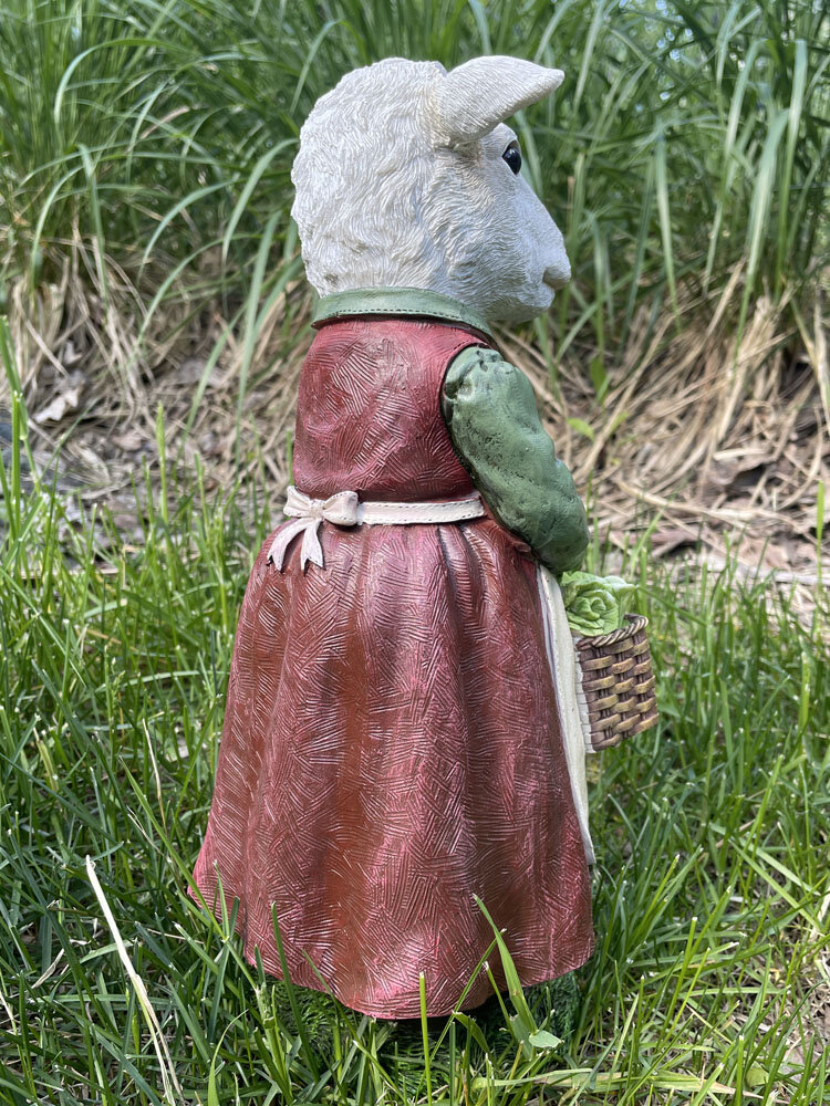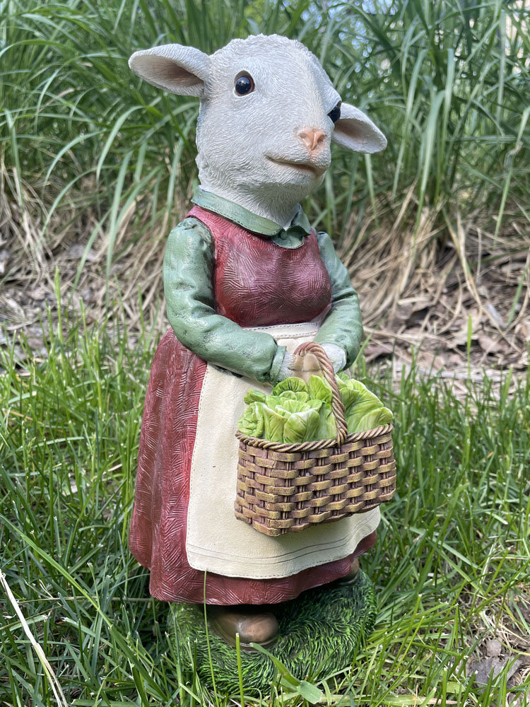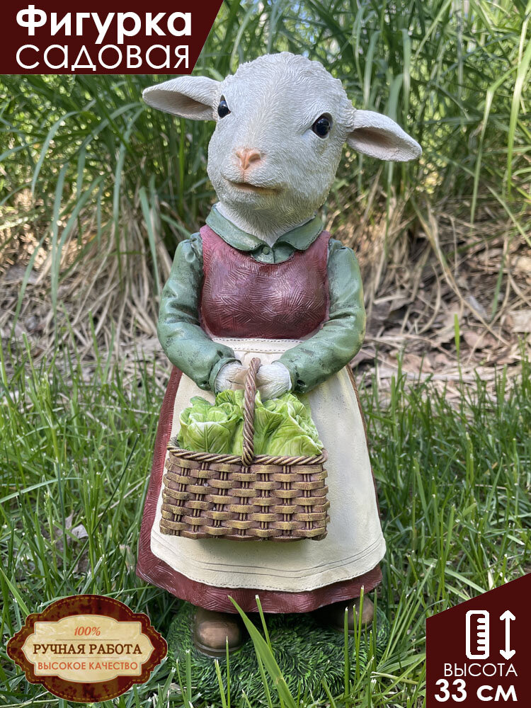 Овечка держит плетенную корзинку с капустой. Украсьте свой участок или дом этой чудесной фигуркой.