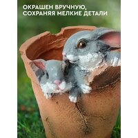 Садовая фигурка "Горшочек с зайцами" может быть размещена в траве, между цветами или около дорожек. Это милый и запоминающийся элемент для ваших гостей, который станет ярким акцентом на вашем участке.