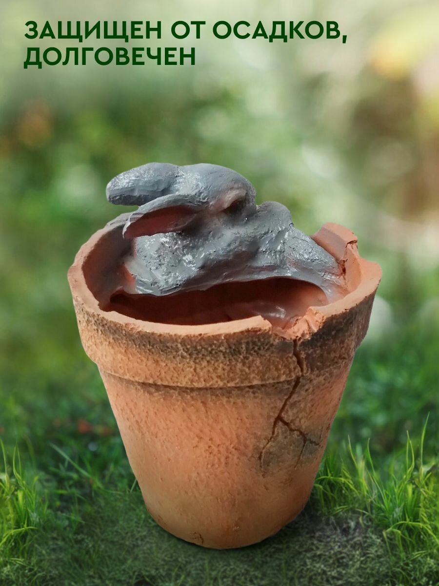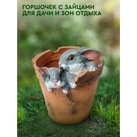 Фигурка садовая "Горшочек с зайцами" станет отличным подарком для любителей активного загородного отдыха, ценящих красоту природы и творчество.