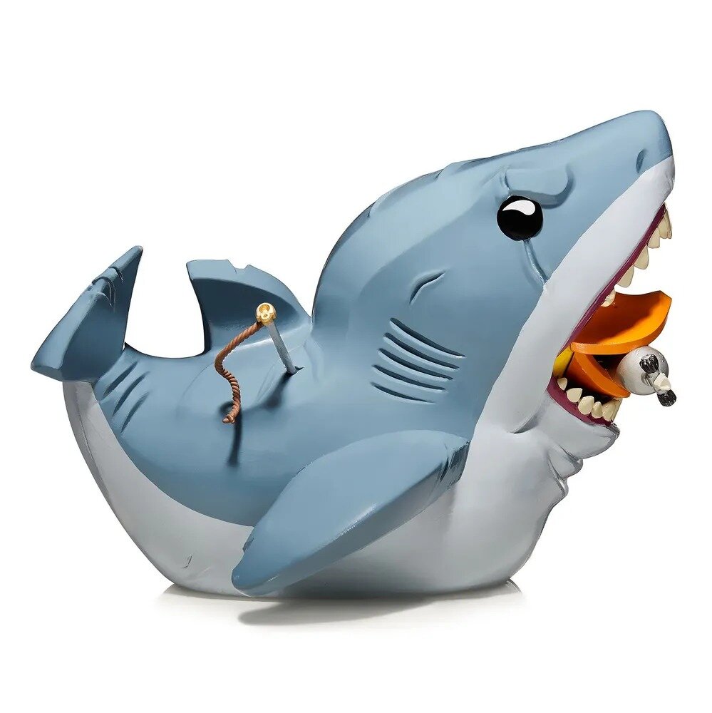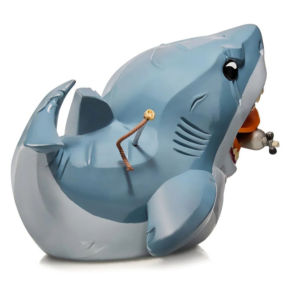 Да-дум-да-дум… охотники за большой белой акулой смогли перехитрить ее, загарпунили ее и даже засунули ей в пасть акваланг – отплавалась, рыбешка! Поклонники фильма «Челюсти» обязательно оценят эту здоровенную коллекционную… утку. Просто выдающийся экземпляр для любой коллекции. Акуле крышка, точнее, акваланг! Акула Брюс из фильма «Челюсти» стала уткой размера XL и, пусть на воде у нее не было бы ни шанса, но зато она выглядит просто шикарно. Множество деталей, включая акваланг в пасти и гарпун в боку. Эта коллекционная фигурка выпущена по лицензии и входит в серию TUBBZ. В TUBBZ все ваши любимые персонажи игр, фильмов, сериалов и массовой культуры представлены в виде уток! Все фигурки этой серии выполнены с невероятным вниманием к деталям и имеют уникальную упаковку в виде ванны.