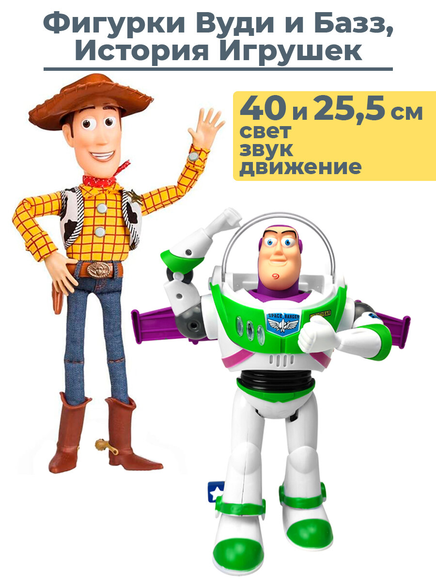 Купить Фигурки Базз Лайтер и Вуди История игрушек набор Toy Story Buzz Lightyear Sheriff Woody 40 и 25,5 см свет движение звук с доставкой по всей России. Фигурки Базз Лайтер и Вуди История игрушек набор Toy Story Buzz Lightyear Sheriff Woody 40 и 25,5 см свет движение звук: сравнение цен, характеристики, фото, актуальное наличие и цены.