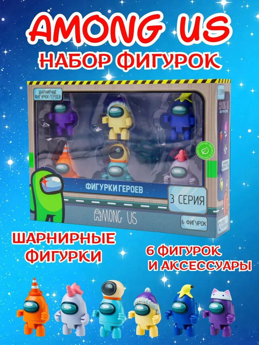 Фигурки PMI Among Us, коллекционные, шарнирные, пластик, аксессуары, 6 штук: сравнение цен, характеристики, фото, актуальное наличие и цены.