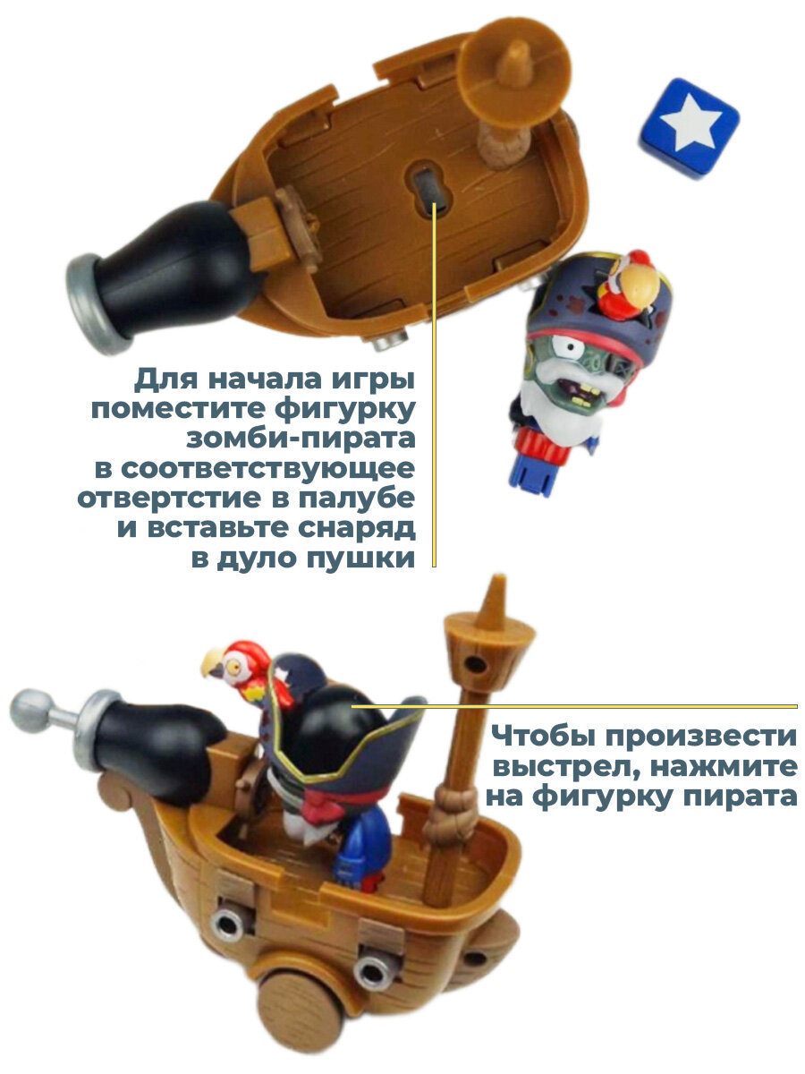 Купить Фигурки со стрельбой Растения Против Зомби Пиратский корабль Plants vs Zombies тир 1 пушка 3 снаряда 6 мишеней с доставкой по всей России.