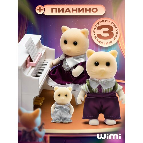 В комплект входят модные котики с одеждой, которую можно менять. Также пианино, на котором они могут «играть», устраивая музыкальные концерты для друзей.