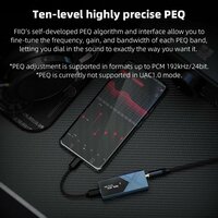 USB-C вход для дополнительного питания; усилитель THX AAA 78+; чип USB на базе XMOS XU316; поддержка 32 бит / 768 кГц, DSD512 и MQA; цифровой выход spdif; встроенный дисплей для отображения информации. 2 режима усиления Low и High. расширенные настройки с помощью приложения Fiio Control Media.