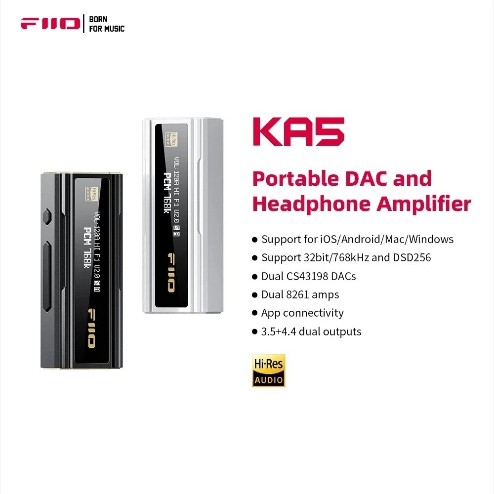 FiiO KA5 USB ЦАП Усилитель для наушников с двойным чипом CS43198 3,5/4,4 мм аудиокабель PC 768 кГц DSD256: сравнение цен, характеристики, фото, актуальное наличие и цены.