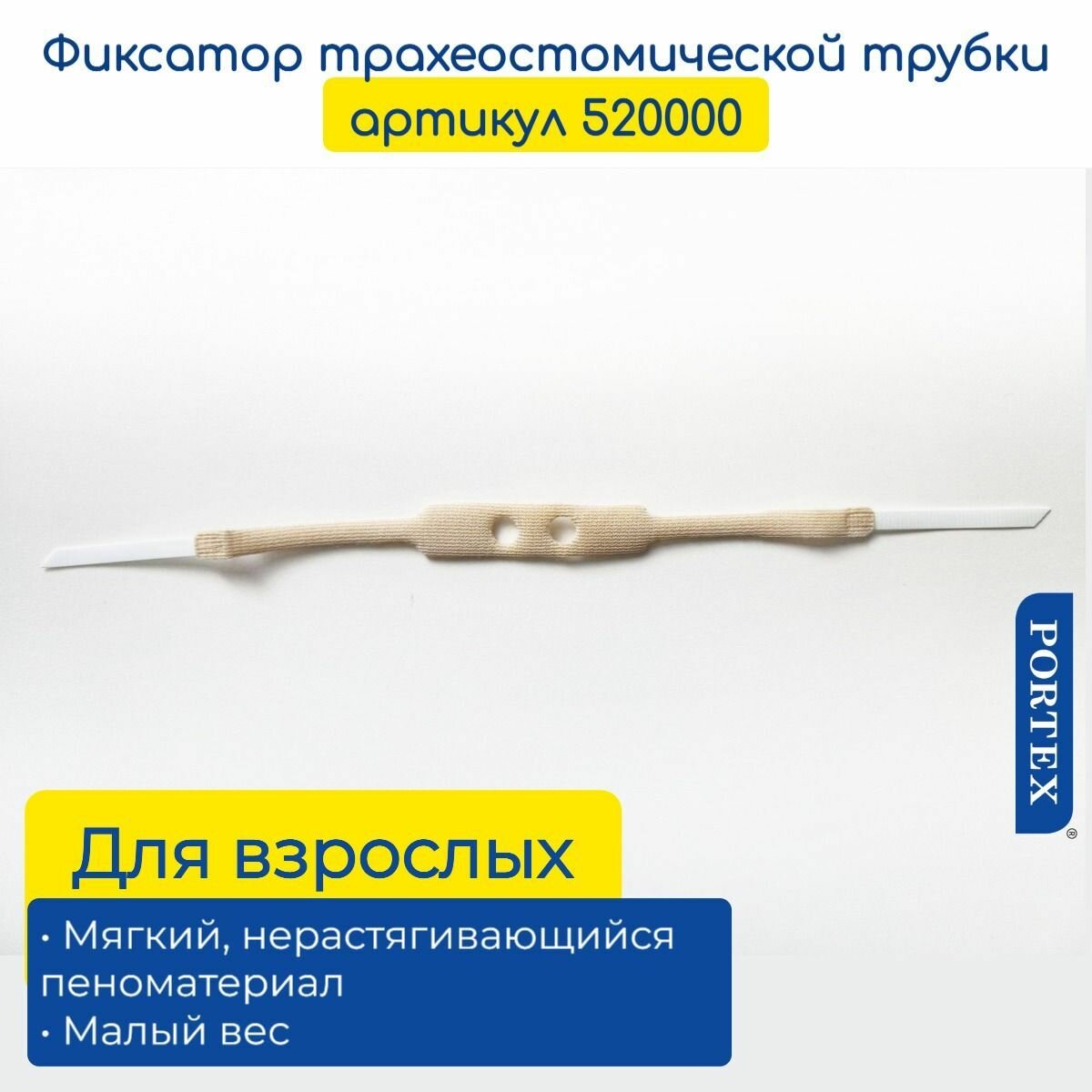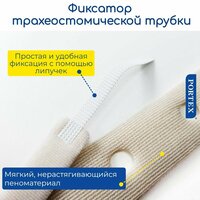 Фиксатор для трахеостомы вокруг шеи выполнен из мягкого пеноматериала, который не растягивается и мало весит. Состоит из единого полотна, комфортно прилегает.
