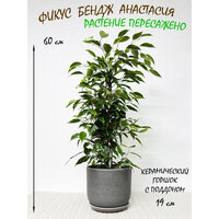 Фикус Бенджамина Анастасия в сером керамическом горшке с поддоном, высота 60см: сравнение цен, характеристики, фото, актуальное наличие и цены.