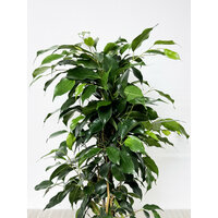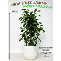 Купить Фикус Бенджамина Даниэль в белом керамическом горшке с поддоном, высота 60см с доставкой по всей России.