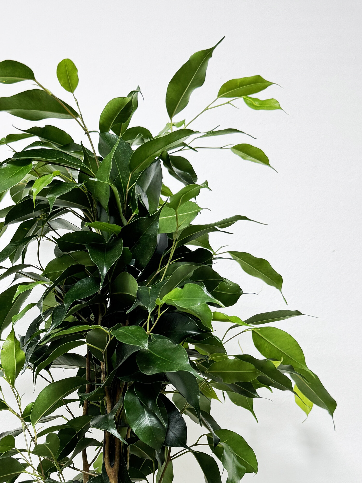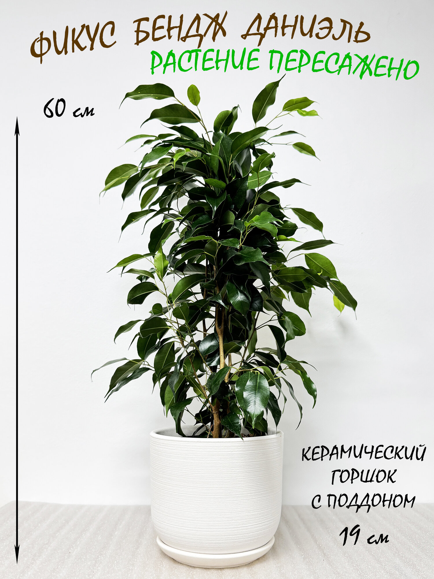 Фикус Бенджамина Даниэль в белом керамическом горшке с поддоном, высота 60см: сравнение цен, характеристики, фото, актуальное наличие и цены.