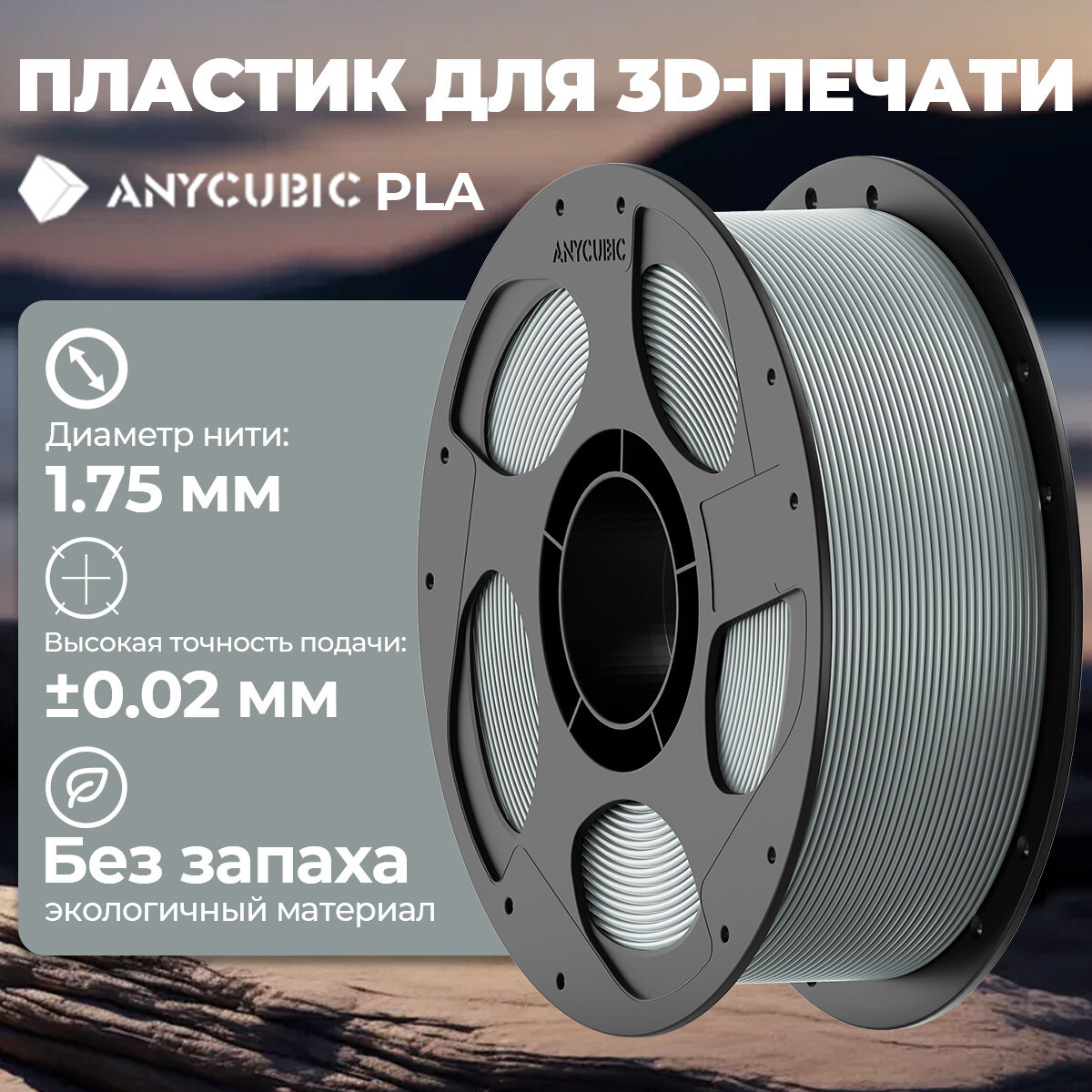 Купить Филамент Anycubic PLA для 3D принтера, Серый 1 кг, Без запаха, экологичный материал с доставкой по всей России.