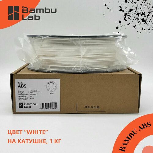 Филамент Bambu Lab ABS White Белый (40100) / Пластик для 3D-принтера , на катушке 1кг , RFID оригинал