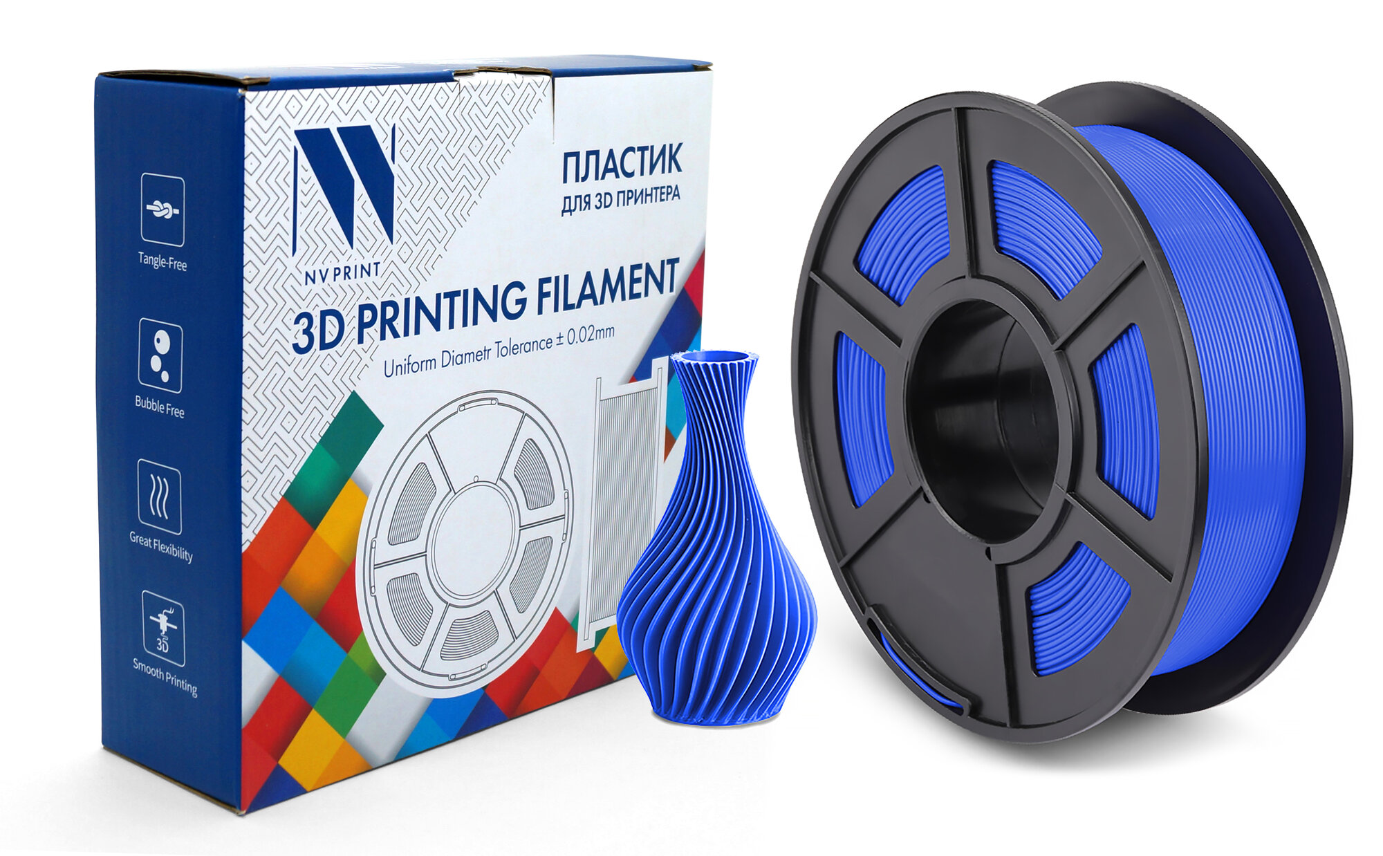 Купить Филамент NVPRINT PLA Blue для 3D печати диаметр 1.75мм длина 330 метров масса 1 кг с доставкой по всей России.