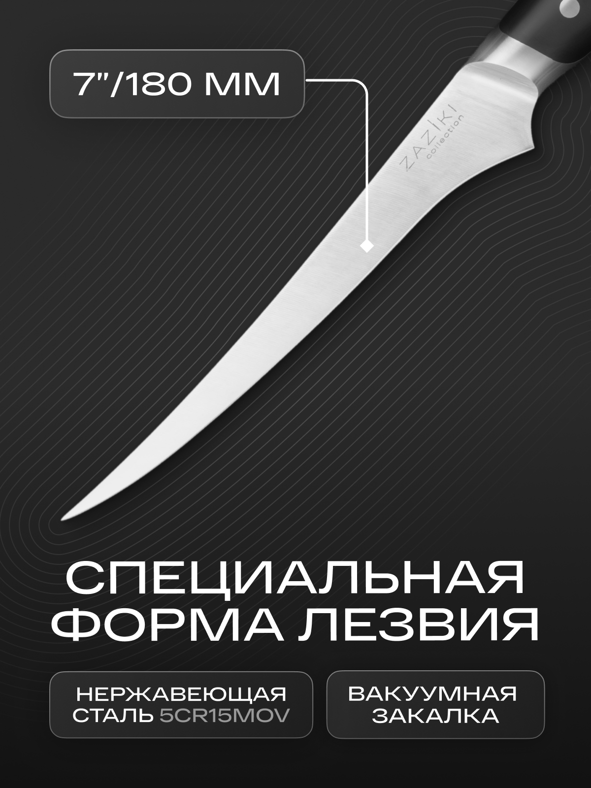 Филейный нож кухонный Zaziki для рыбы разделочный, гибкий, нержавеющая сталь: сравнение цен, характеристики, фото, актуальное наличие и цены.
