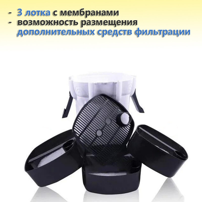 - лотки: 3 штуки + 3 мембраны, возможность добавления своего фильтрующего материала в лотки
