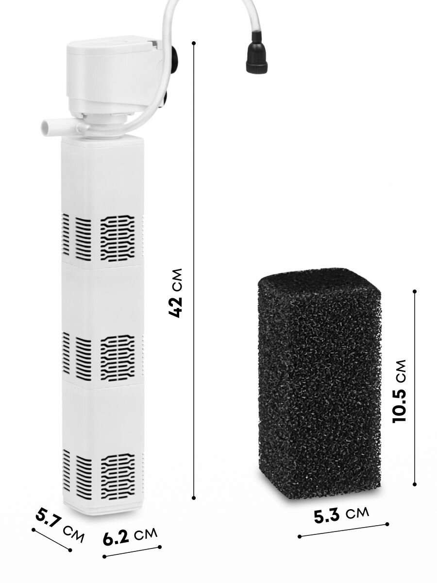 Фильтр для аквариума поможет обеспечить идеальные условия для жизни рыбок и других обитателей мира аквариумистики и террариумистики! Внутренний трехсекционный фильтр обеспечит идеальную фильтрацию воды в аквариумах, удаляя все загрязнения и обеспечивая надлежащую аэрацию. Предназначен для аквариумов до 350 литров. Благодаря трем крупнопористым губкам, он эффективно удерживает мусор и остатки еды, что делает воду в аквариуме чистой и прозрачной. Аквариумный фильтр, кроме фильтрации, может насыщать воду кислородом. Для подачи воздуха регулятор, расположенный на трубке, должен быть открыт, а свободный край трубки расположен выше уровня воды. При снижении аэрации, фильтр требует полной очистки от загрязнений. Для этого нужно извлечь ротор, промыть его и роторную камеру под проточной водой, очистить трубку подачи воздуха и отверстия для подключения. При установке фильтра обратите внимание на глубину погружения. Для аэрации, его рекомендуется устанавливать ближе к поверхности, не более 5 см от кромки воды. Внутренний фильтр для аквариума должен быть полностью погружен в воду, иначе корпус перегревается, что приводит к его быстрому выходу из строя. Погружной фильтр подойдет не только для аквариумных рыб, но и для обитателей террариума - водных черепах и других рептилий. Не откладывайте заботу о вашем аквариуме на потом - приобретите фильтр для аквариума прямо сейчас и создайте идеальные условия для жизни ваших питомцев!