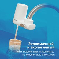 Фильтр для очистки воды на кран Philips AWP3703/10, скорость 2 л/мин, ресурс 1000 л, 2 режима воды, механизм QuickTwist, таймер замены картриджа, белый