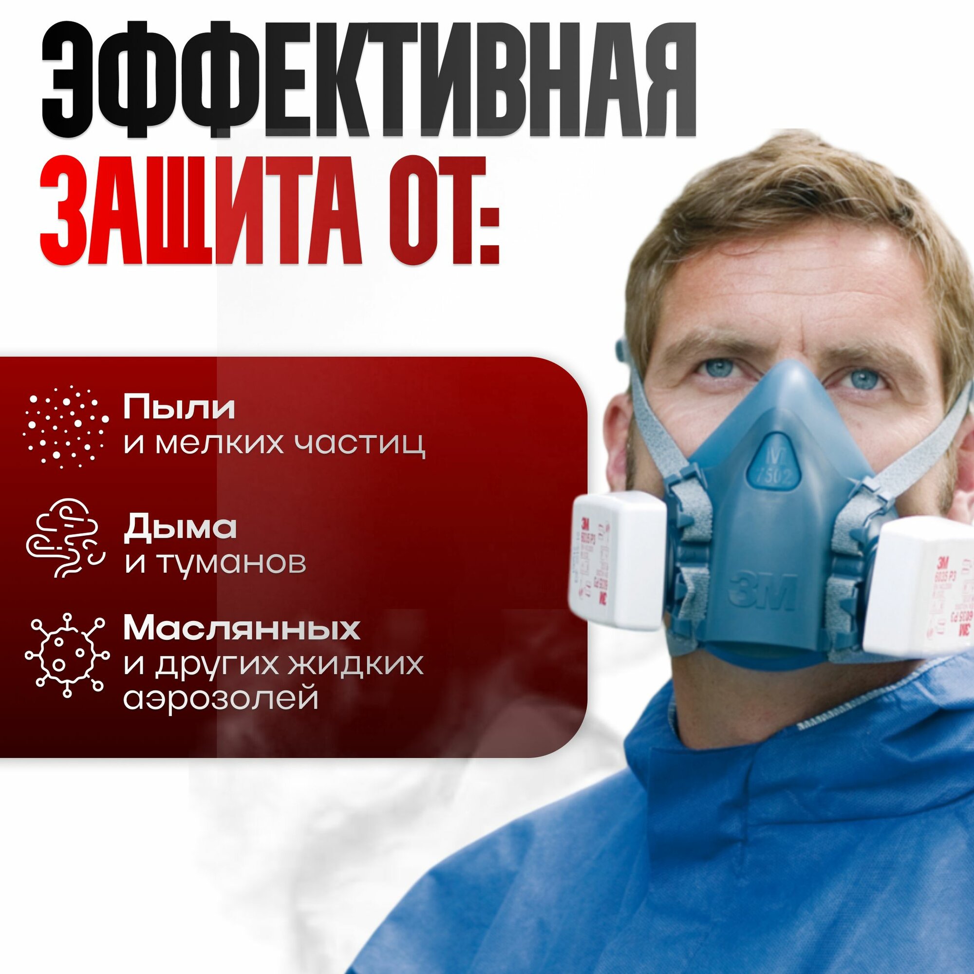 Совместим с полумасками 3M 6000 и 3M 7500 , а также полнолицевыми масками 3M.