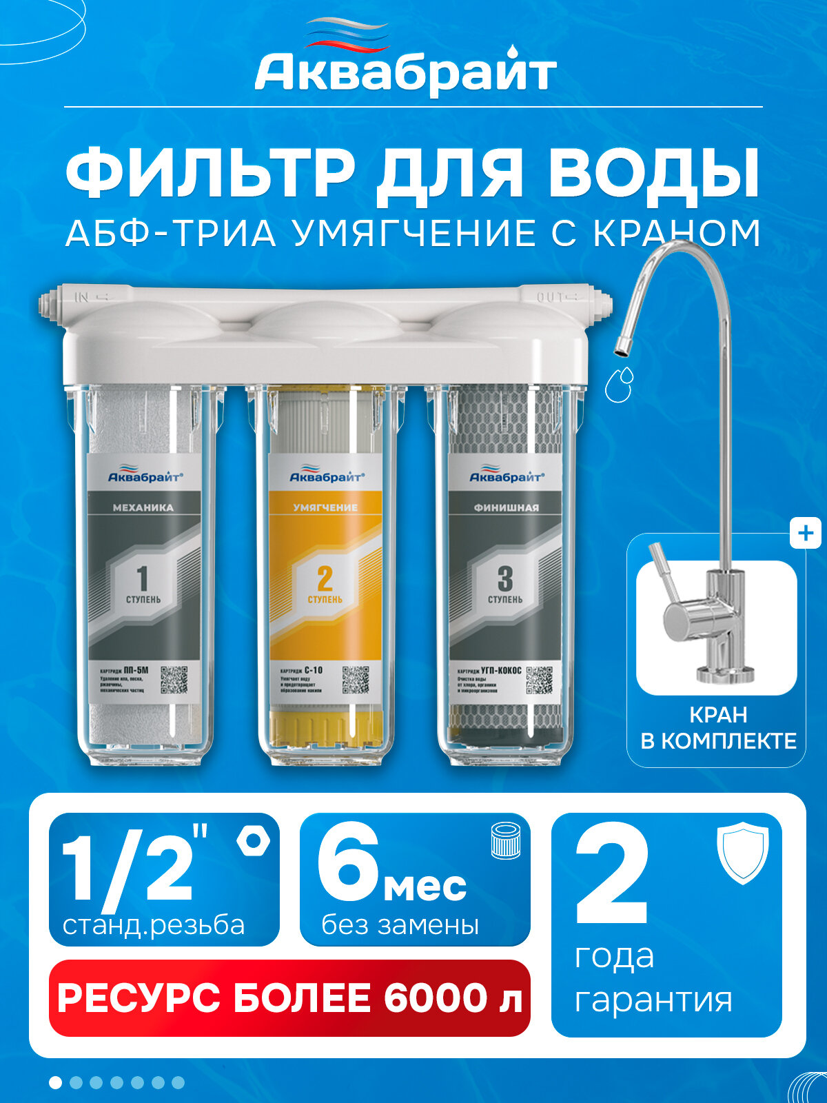 Купить Фильтр для воды АкваБрайт абф-триа умягчение под мойку, трехступенчатая фильтрация с отдельным краном с доставкой по всей России. Фильтр для воды АкваБрайт абф-триа умягчение под мойку, трехступенчатая фильтрация с отдельным краном: сравнение цен, характеристики, фото, актуальное наличие и цены.
