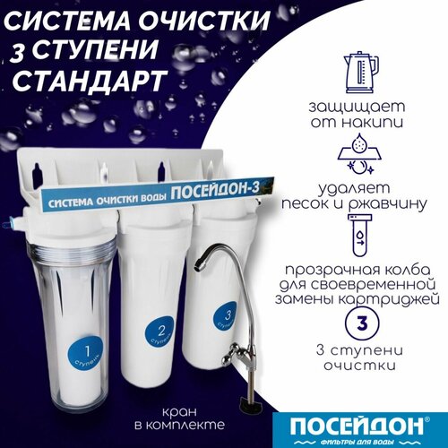 Фильтр для воды под мойкой посейдон «ПОСЕЙДОН-3-1П» стандарт. Проточный фильтр. 3-х ступенчатый.: сравнение цен, характеристики, фото, актуальное наличие и цены.