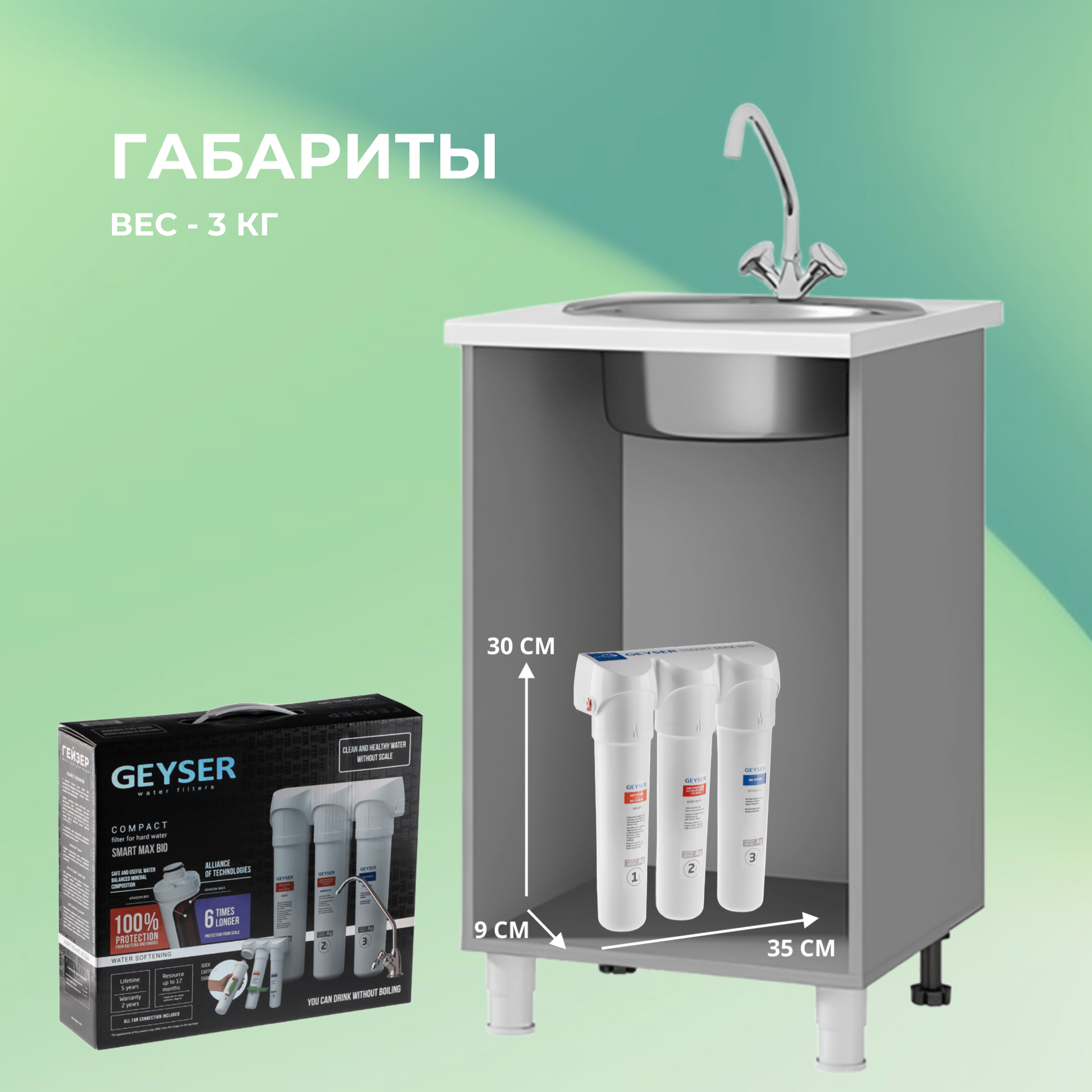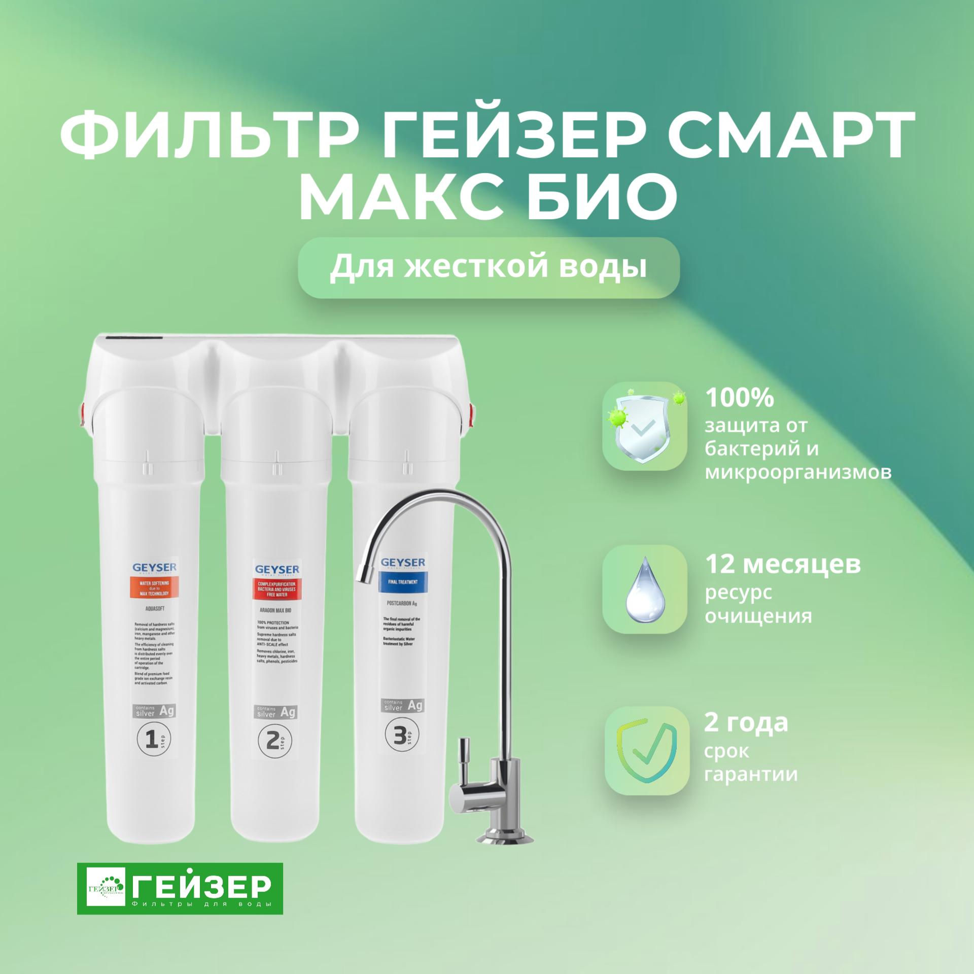 Купить Фильтр для воды под мойку Гейзер Смарт Макс Био для жесткой воды с защитой от бактерий и вирусов Артикул: 16031 с доставкой по всей России. Фильтр для воды под мойку Гейзер Смарт Макс Био для жесткой воды с защитой от бактерий и вирусов Артикул: 16031: сравнение цен, характеристики, фото, актуальное наличие и цены.