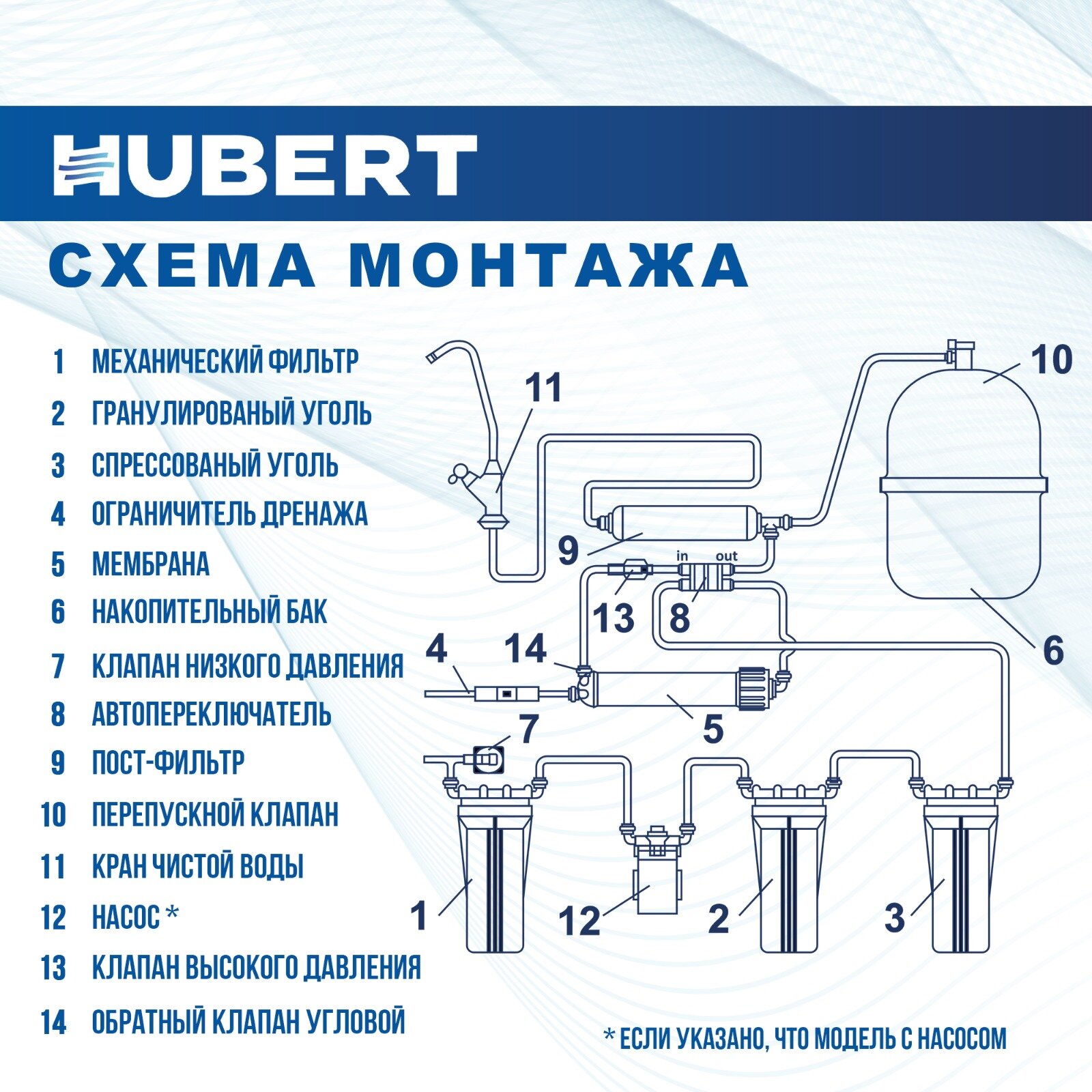 Фильтр для воды под мойку обратного осмоса Hubert FE-105 KZ (RO 50g) с краном, 6 ступеней очистки, без насоса с минерализатором: сравнение цен, характеристики, фото, актуальное наличие и цены.