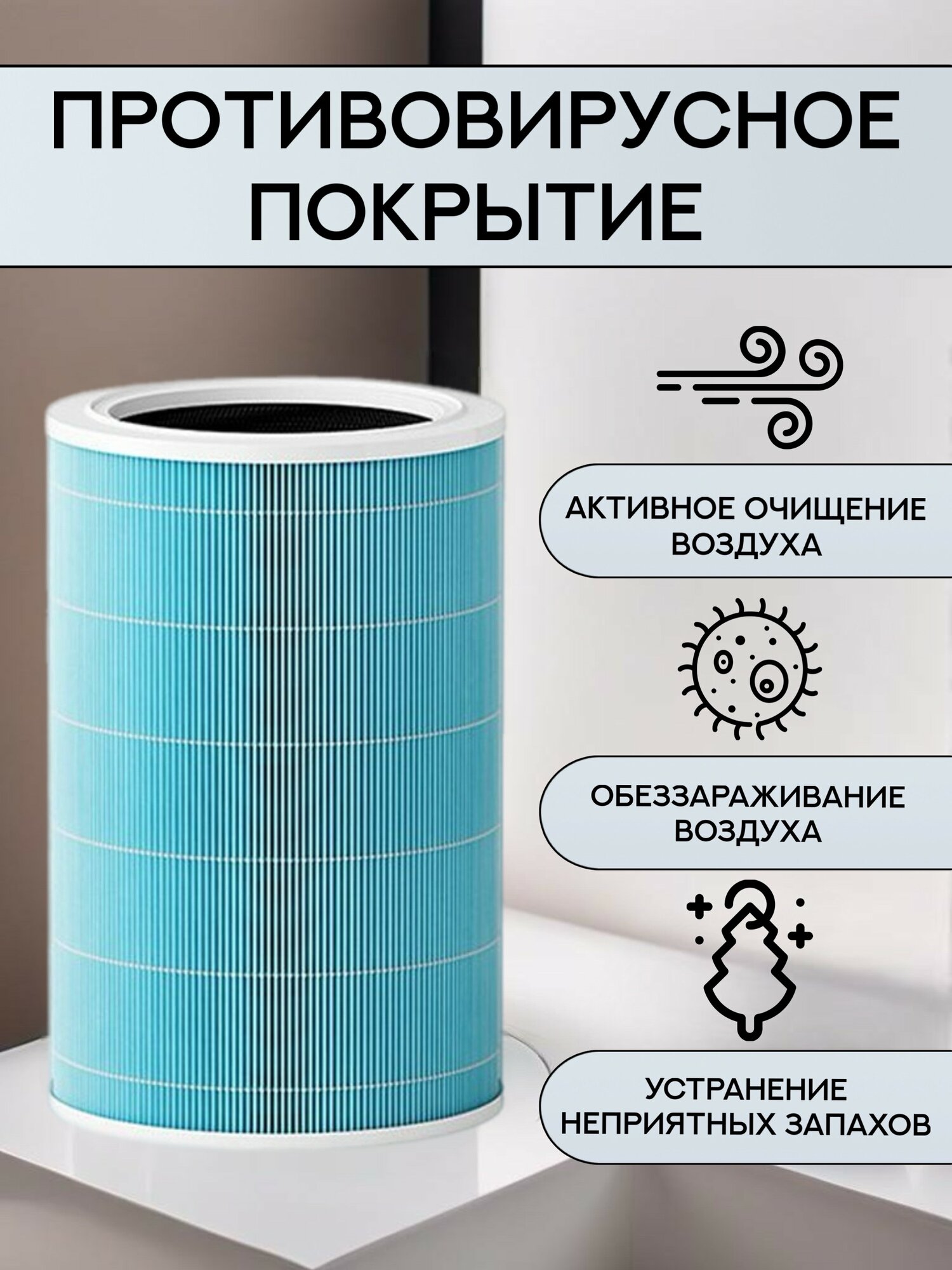 Антибактериальный фильтр с чипом RFID для воздухоочистителя Xiaomi Smart Air Purifier 4 (M17-FLP-GL, bhr5272gl, bhr5274gl, ac-m17-sc)