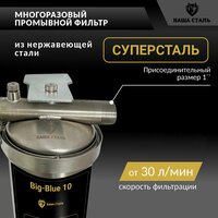 Промывной сетчатый магистральный фильтр грубой механической очистки воды "суперсталь" BB10, 10 микрон из нержавеющей стали, используется как первая или предварительная ступень очистки воды от механических примесей