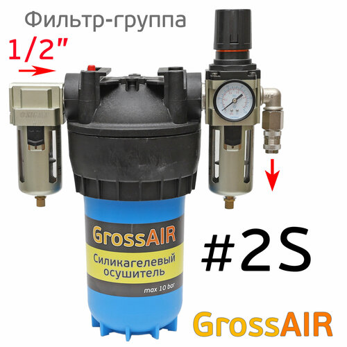 Фильтр-группа осушитель GrossAIR 2S (вход 1/2″, редуктор, БРС) блок подготовки сжатого воздуха: сравнение цен, характеристики, фото, актуальное наличие и цены.