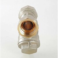 (VT.192. N) Фильтр механической очистки косого типа. Может устанавливаться в горизонтальном и вертикальном (движение потока – сверху–вниз) положении. Корпус и пробка фильтров изготовлены горячим прессованием из латуни марки CW617N (европейский стандарт EN 12165) и никелированы. Между ними корпусом и пробкой, имеющей отверстие для пломбировки, предусмотрена тефлоновая уплотнительная прокладка. Максимальное рабочее давление – 20. Максимальная рабочая температура фильтруемой среды – 150 °C. Резьба присоединения – внутренняя.
