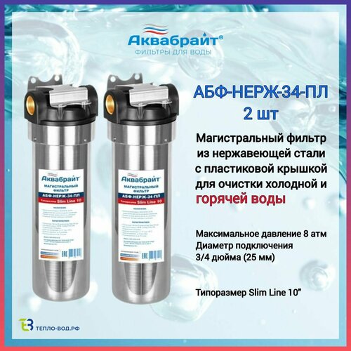 Фильтр магистральный Аквабрайт АБФ-НЕРЖ-34-ПЛ — 2 шт. для горячей и холодной воды из нержавеющей стали с пластиковой крышкой 10″, 3/4, ключ, кронштейн.: сравнение цен, характеристики, фото, актуальное наличие и цены.