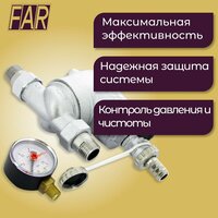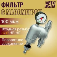 Купить Фильтр Far 100мкм, с манометром, Max: 95 °C, 25 бар. Поворотное соединение 3/4″ НР с доставкой по всей России.