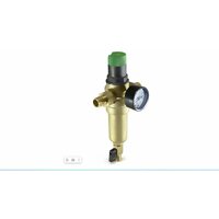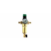 Фильтр прямой с редуктором и манометром самоочищающийся, универсальный, латунный, установочные фитинги на 3/4 Ш и 3/4 Ш.