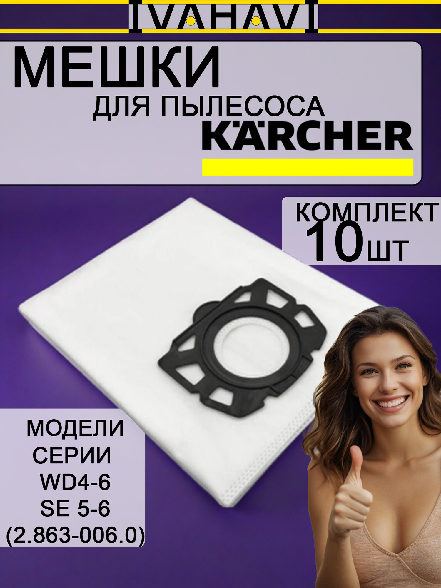 Купить Фильтр-мешок 10 шт. для пылесосов Karcher (2.863-006.0) серий WD 4.5.6 SE 5.*, SE 6.* IVAHAVI с доставкой по всей России.