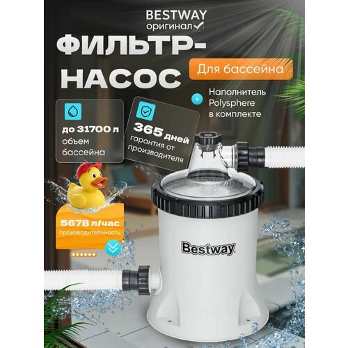 Фильтр-насос Bestway, с шариками, для бассейнов от 31 м3, скорость потока 10 м3/час: сравнение цен, характеристики, фото, актуальное наличие и цены.