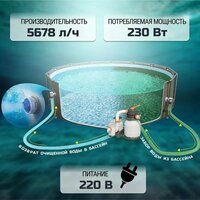 Песчаный насос фильтр от компании Bestway используется для циркуляции и механической очистки воды в бассейнах от различного мусора, включая песок, листья, насекомых и прочее. Он подключается к бассейну с помощью двух шлангов и имеет шесть режимов работы, включая обратную промывку и манометр для контроля давления. Фильтр насос оснащен скиммером для сбора крупного мусора. Песочный фильтр-насос 5678 л/ч подключается к бассейну двумя гофрированными шлангами диаметром 32мм с муфтами, которые идут в комплекте.