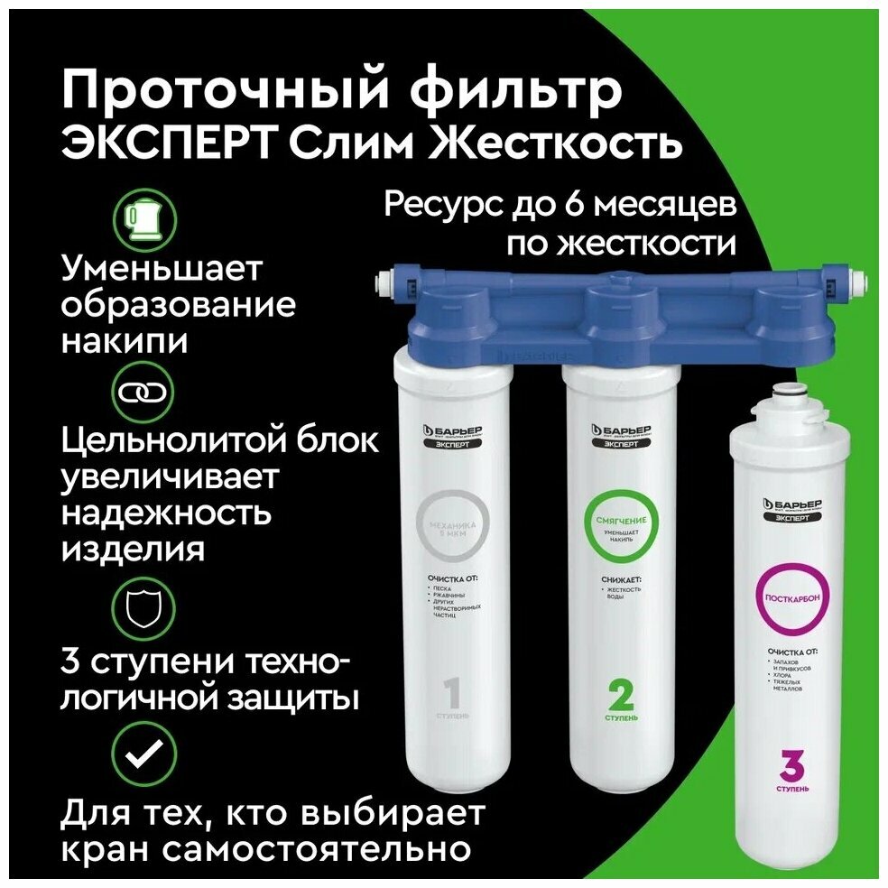 Фильтр под мойкой барьер эксперт Слим Жесткость без крана, белый: сравнение цен, характеристики, фото, актуальное наличие и цены.