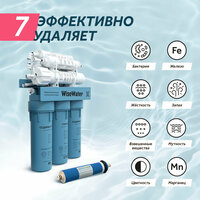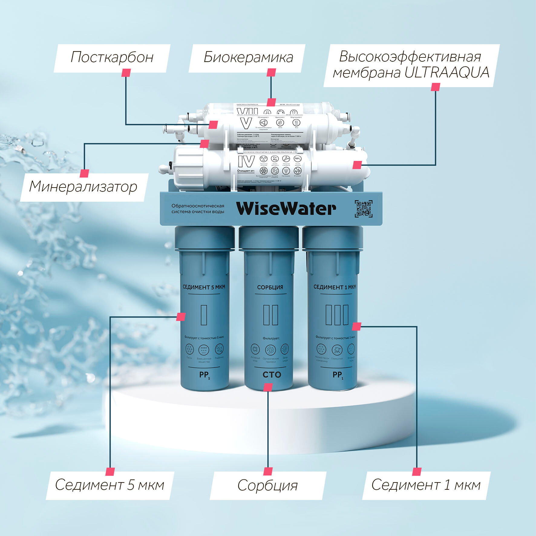 Обратноосмотические системы WiseWater имеют надёжные соединения и фитинги для защиты от протечек, удобные колбы под универсальные картриджи для быстрой замены фильтрующих элементов, а также системы очищают воду на молекулярном уровне с помощью высокопроизводительной обратноосмотической мембраны.