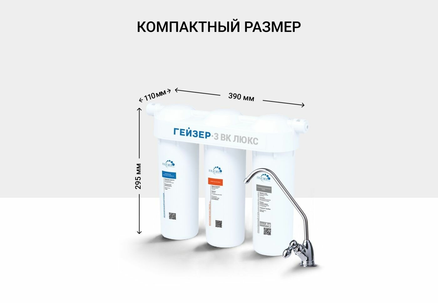 Фильтр для чистой воды Гейзер-3 ВК Люкс для жесткой воды разработан для регионов со средним уровнем минерализации (жесткая вода).