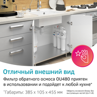 Классический пятиступенчатый фильтр под мойку система с обратным осмосом Prio OU480 с традиционной мембраной форм-фактора 1812 в отдельном корпусе.