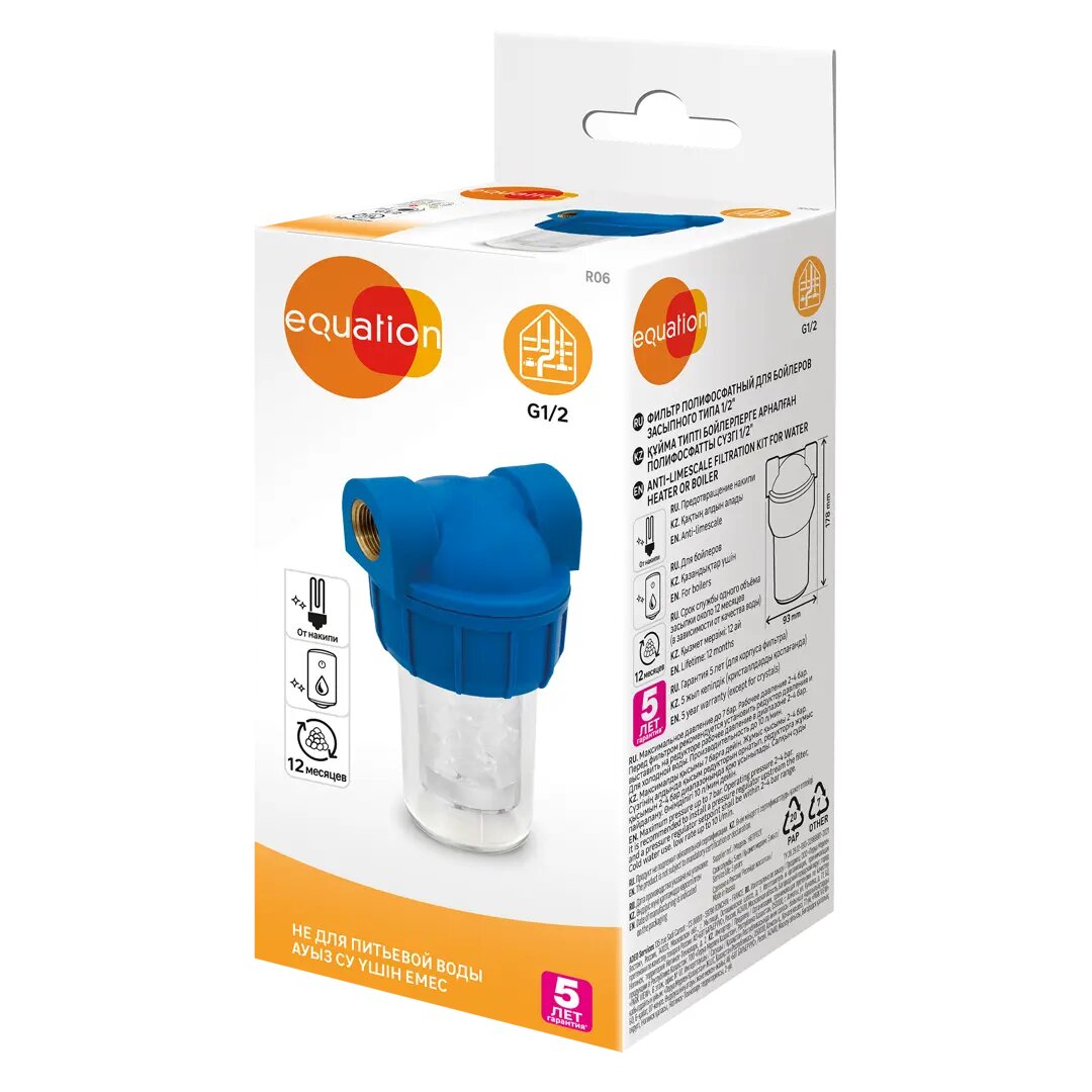 Фильтр полифосфатный Equation засыпного типа для бойлеров, резьба 1/2”: сравнение цен, характеристики, фото, актуальное наличие и цены.