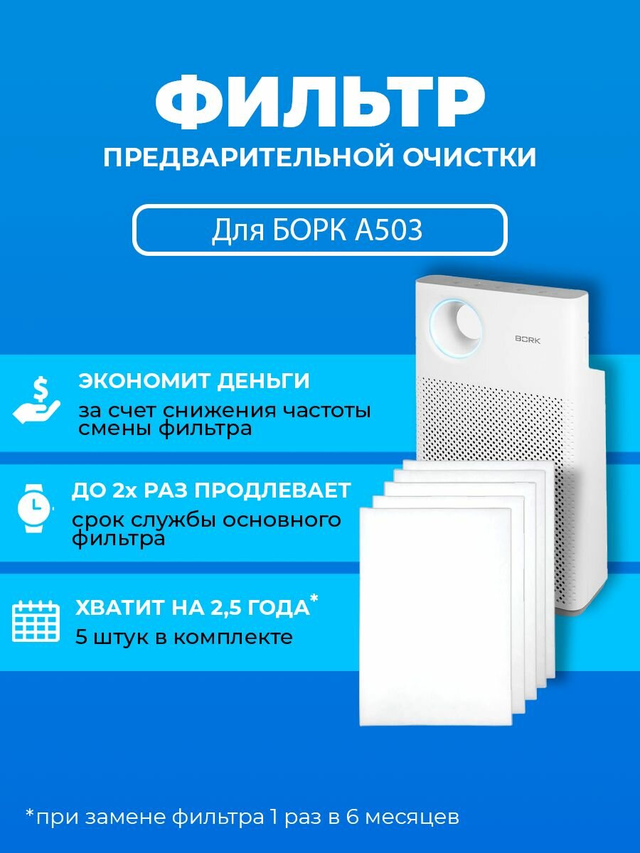 Фильтр для очистителя воздуха PREfiltr, для BORK A700, грубой очистки, 5 шт